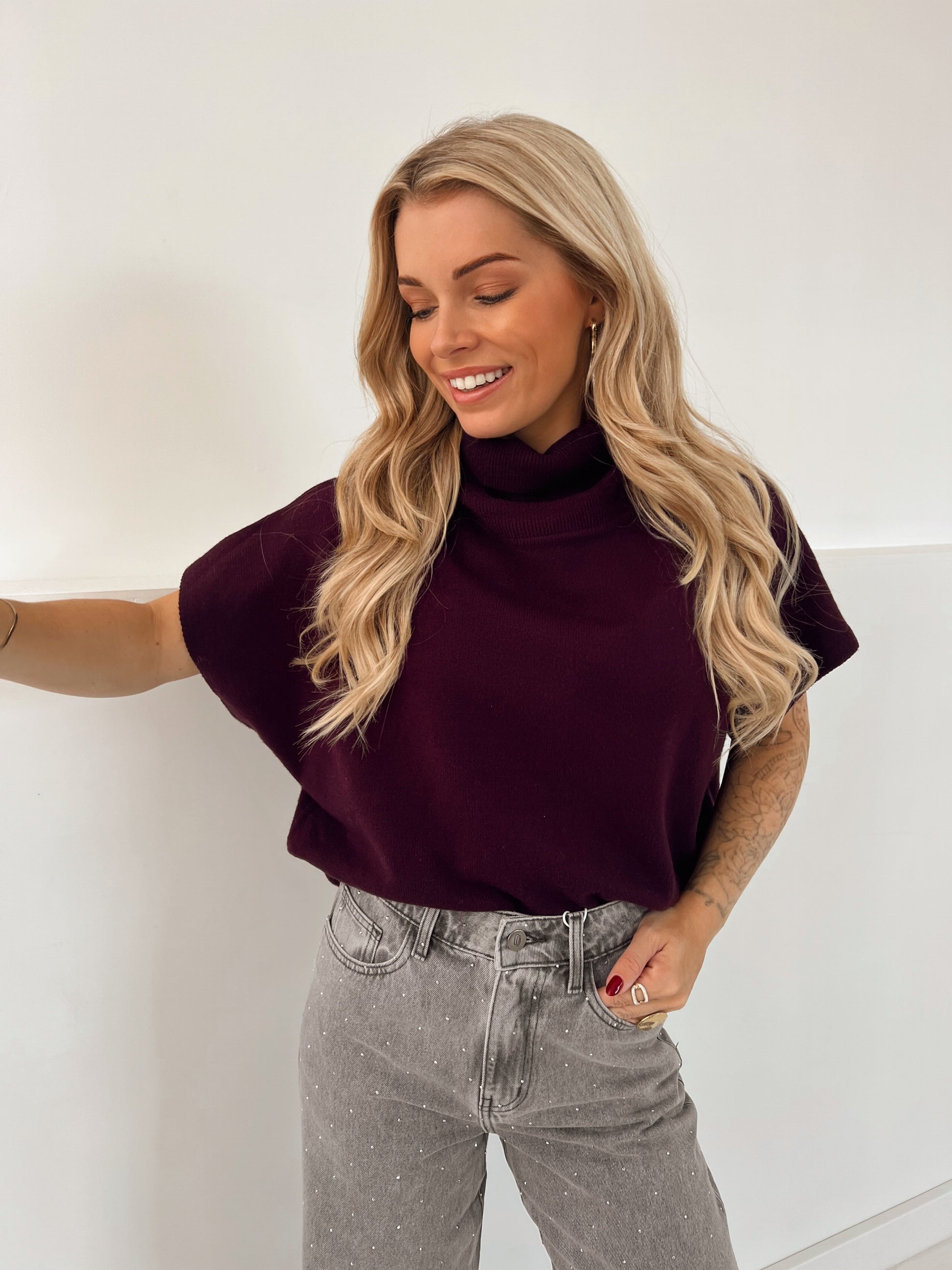 Rekt mooi mee. Dit trui’tje is de perfecte tijdloze basic die je het hele jaar door kan dragen! Kan uiteraard ook met een top met lange mouwen onder gedragen worden. Leuk is bijvoorbeeld onze leopard mesh top of onze kanten topjes.