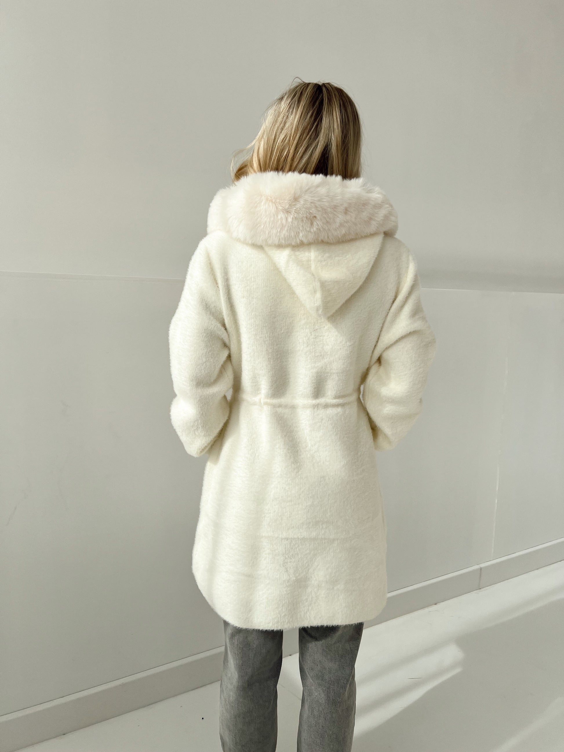 De faux fur kan van de kap gehaald worden. Met zakken.