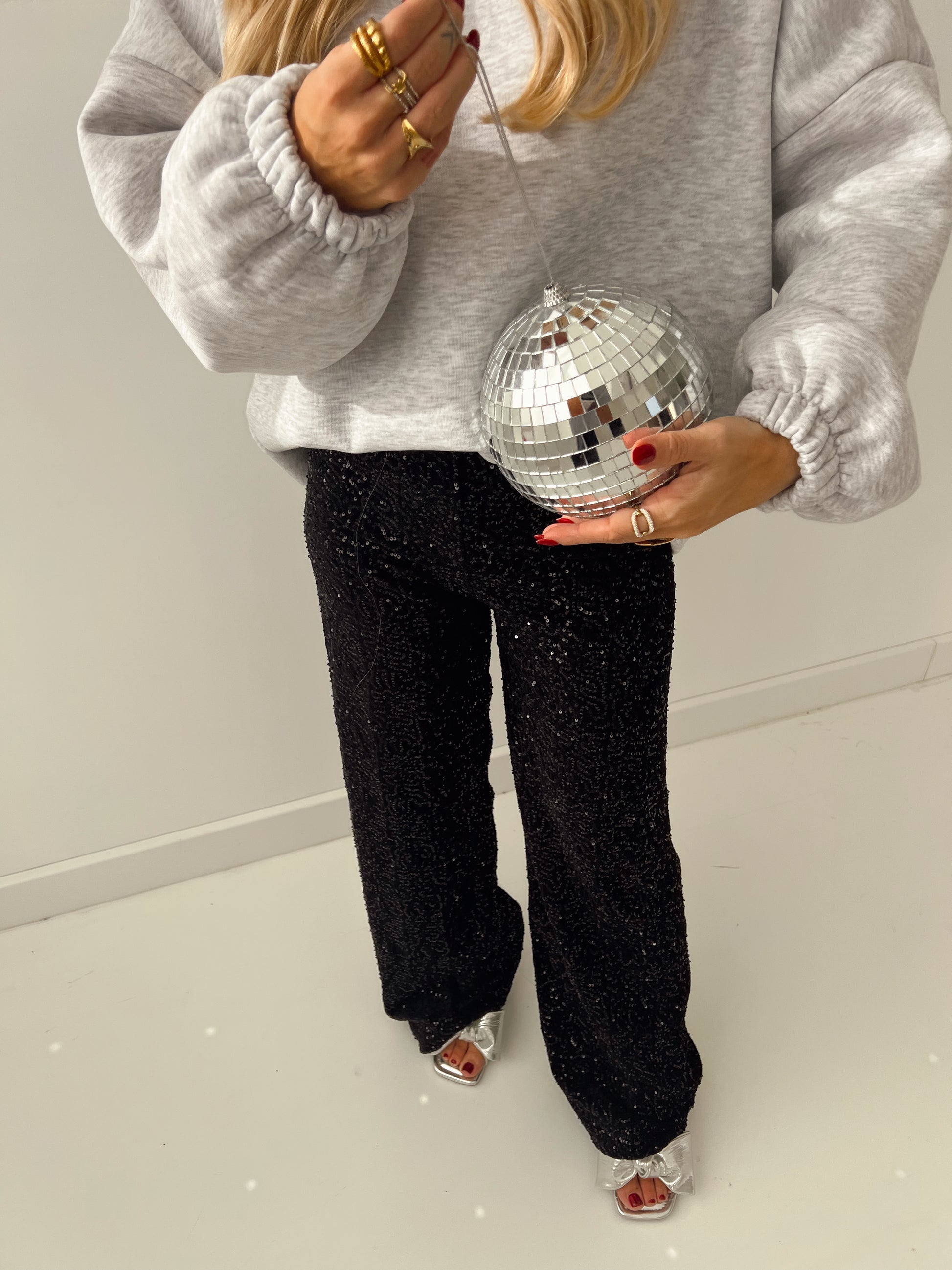 Deze broek met pailletten is de ideale party look voor de feestdagen! Heeft een rekker aan de taille. Past dus perfect voor alle maatjes. De binnenkant is gevoerd.