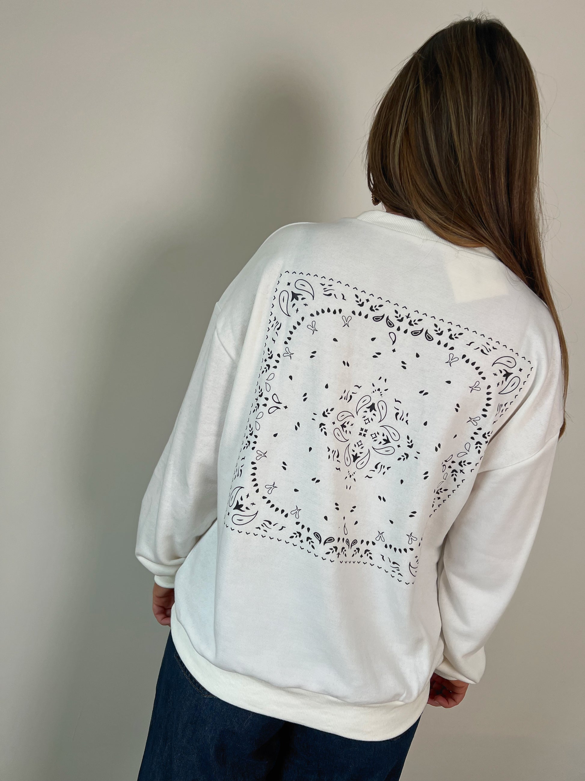De sweater valt mooi voor alle maatjes. Voor de kleinste maatjes kan hij oversized vallen.